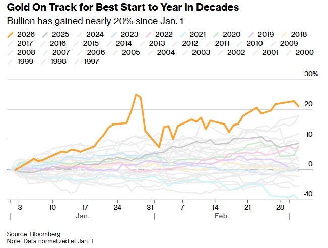今年以来,金价已上涨约20%——并在1月下旬触及5595美元/盎司上方的历史新高——持续的地缘政治与贸易紧张局势,以及对美联储独立性的担忧,共同支撑了黄金需求。