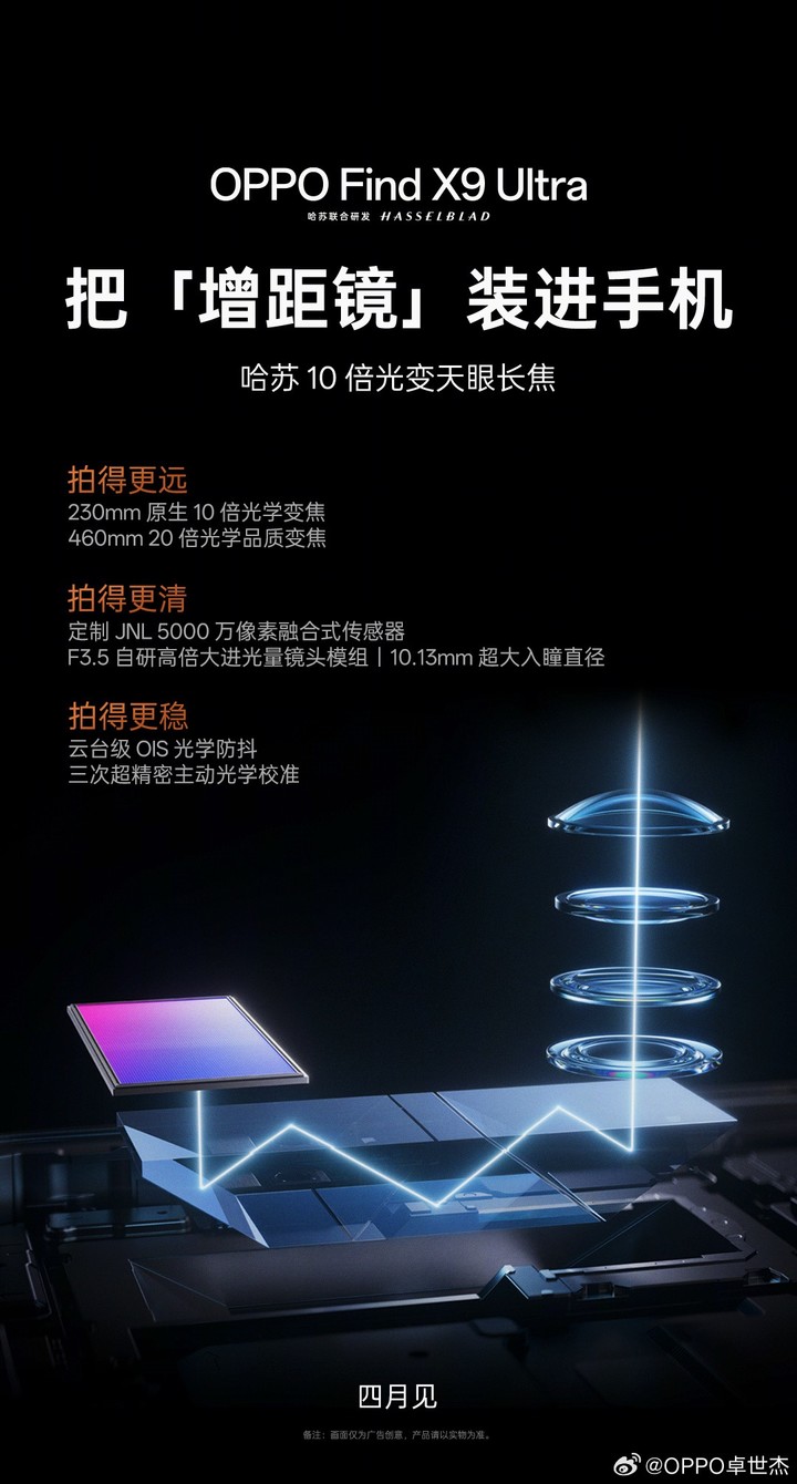 OPPO Find X9 Ultra 配备「增倍镜级别」10 倍长焦